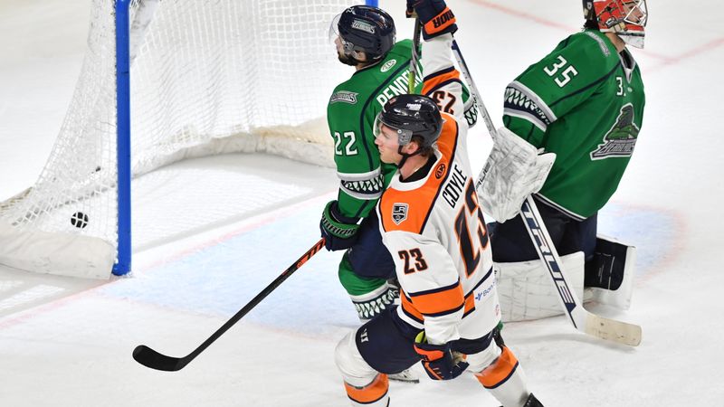 It didn't take long for the Swamp Rabbits to celebrate their triumph and collect the second point up for grabs. Just 44 seconds into overtime, Carter Souch hit Max Coyle, charging into the Everblades zone off the bench. From the high slot, the rookie unleashed a wrister from the top of the slot, solidifying the Swamp Rabbits win by a 3-2 score.