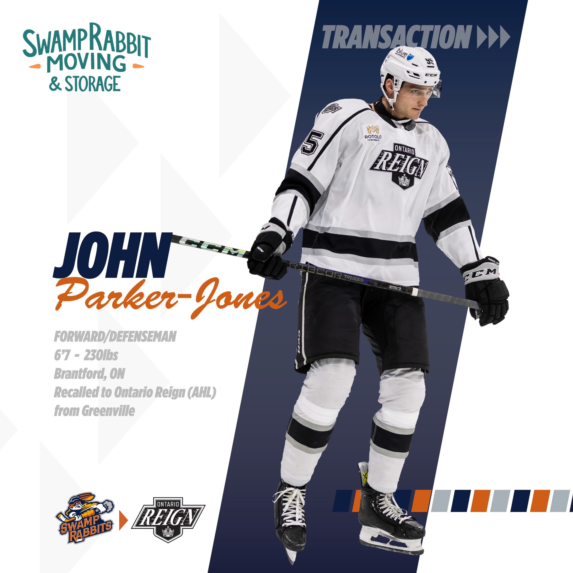 (GREENVILLE, S.C.) – The Greenville Swamp Rabbits, proud ECHL affiliate of the NHL’s Los Angeles Kings, announced today via a Swamp Rabbit Moving Transaction that two-way skater John Parker-Jones has been called up by the team’s AHL affiliate, the Ontario Reign.
