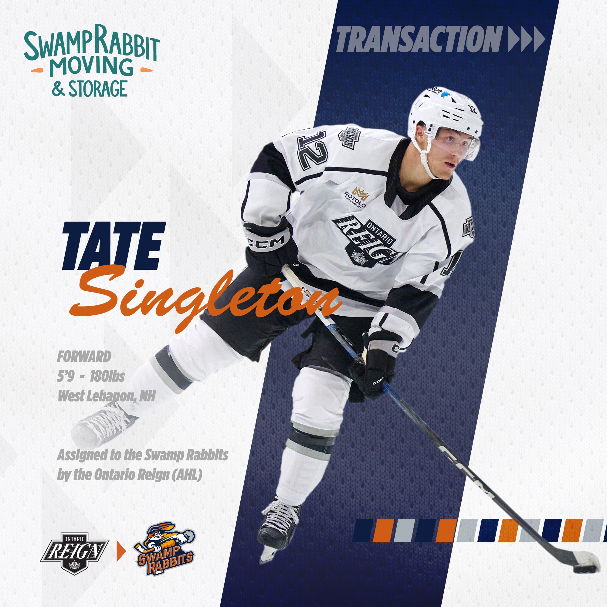 (GREENVILLE, S.C.) – The Greenville Swamp Rabbits, proud ECHL affiliate of the NHL’s Los Angeles Kings, announced via a Swamp Rabbit Moving Transaction that Tate Singleton has been assigned to the Swamp Rabbits by the Ontario Reign in advance of “NASCAR Night,” presented by Arthrex, tonight against the Reading Royals.