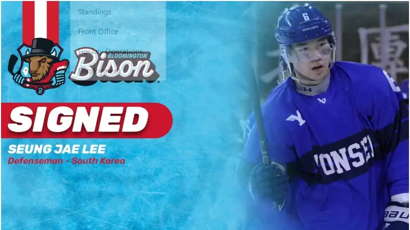 Bloomington, Ill. – Bloomington Bison Head Coach, Phillip Barski, announced today that the team has signed defenseman Seung Jae Lee to an ECHL standard player contract.