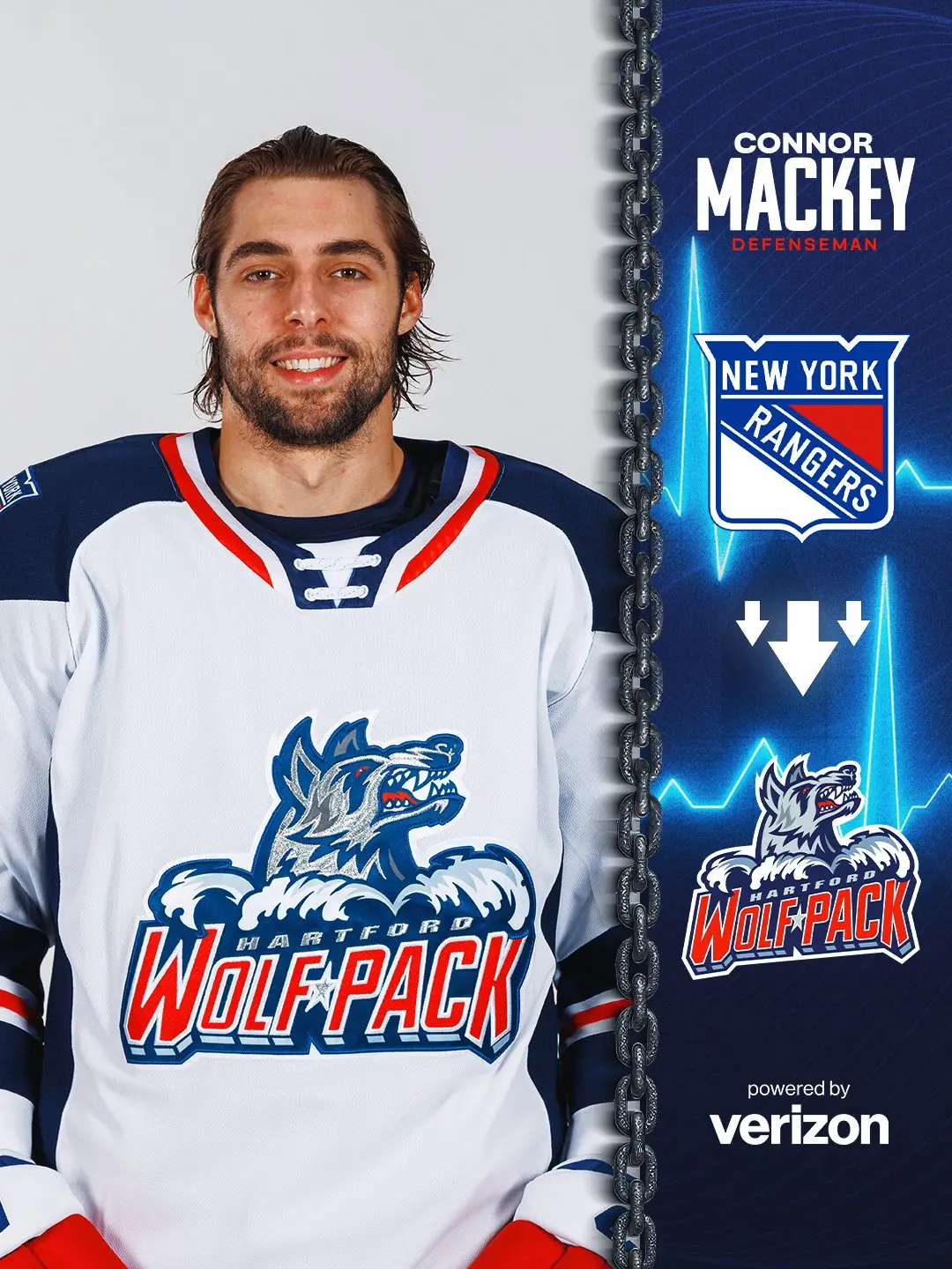 HARTFORD, CT – New York Rangers President and General Manager Chris Drury announced today that the club has assigned defenseman Connor Mackey to the AHL’s Hartford Wolf Pack.